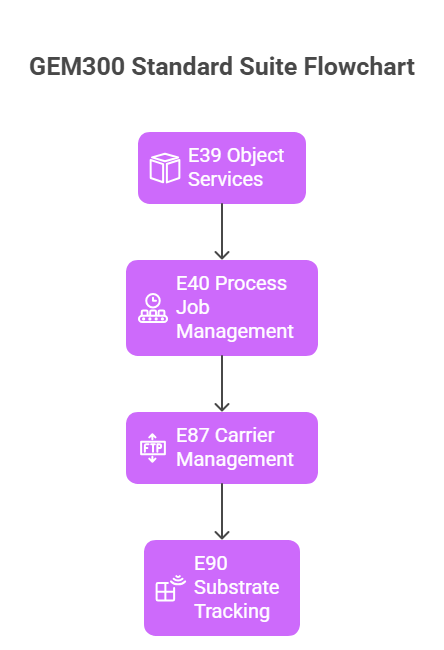 - E40 (Process Job Management): tracking the processing of specific wafers.